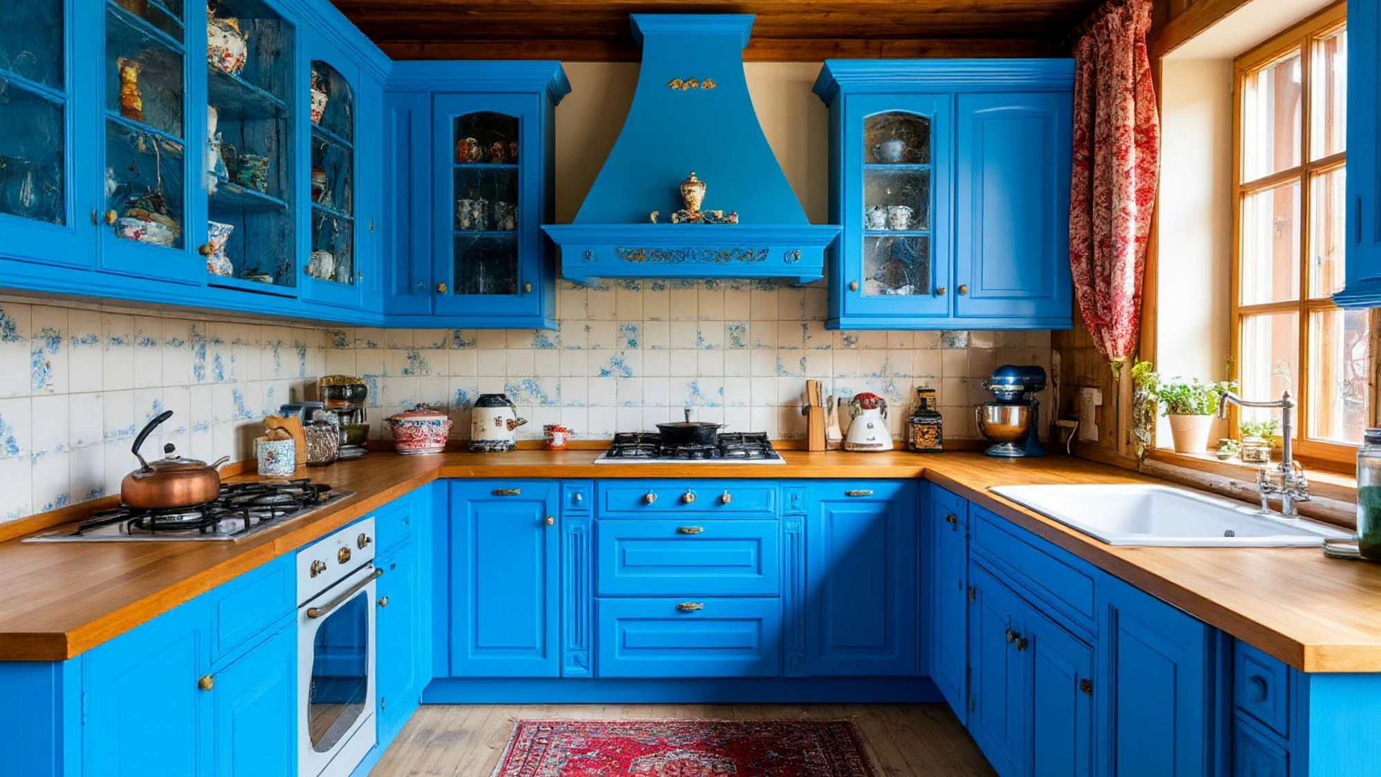 Кухни в русском стиле ценятся за свой уютный характер, атмосферу тепла и домашнего комфорта. "Ладога" воплощает эти качества через сочетание насыщенного синего цвета фасадов с декоративными элементами, которые подчёркивают традиционное оформление. Цвет фасадов выбран не случайно: глубокий синий тон визуально расширяет пространство, придаёт интерьеру свежесть и динамику, а в сочетании с деревянной столешницей и декоративной фурнитурой создаёт ощущение стабильности и надёжности. Такой дизайн гармонично вписывается в любой интерьер, добавляя ему индивидуальности и выразительности.