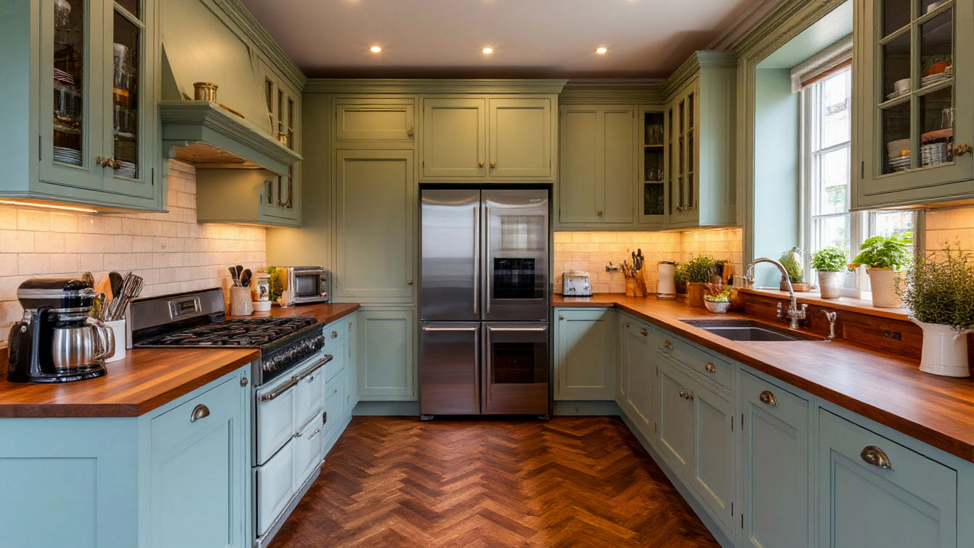 С первого взгляда кухня "Туман" производит впечатление лёгкости и безупречного вкуса. Мягкий серо-голубой оттенок фасадов будто растворяется в свете, создавая эффект глубины и воздушности. Такой цвет напоминает о раннем утре в Лондоне, когда солнце ещё не пробилось сквозь облака, и над домами стелется лёгкий влажный туман. Он придаёт пространству особое настроение — уютное, но не простое, спокойное, но с характером. Именно в этом заключается очарование английского стиля: он не броский, но притягивает взгляд своей целостностью и атмосферой.