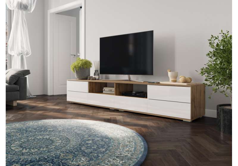 ТВ-тумба Маллоу дуб вотан / белый глянец (240,2x47,3x43,6).