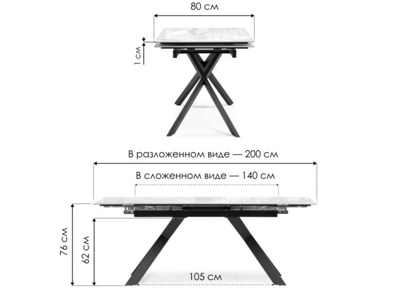 Керамический стол Хилбри 140(200)х80х76 оробико / черный.
